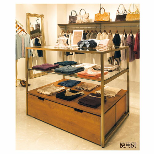 ●サイズ:W122×D85×H100cm トロッコ内寸:W112×D36.2×H22.3cm●素材・加工:フレーム:スチール製 アンティークゴールドメッキ 上段・中段:透明強化ガラス5mm厚 下段:天然木20mm厚 トロッコ:天然木●重量:76.5kg●耐荷重:ガラス棚:15kg 木棚:20kg●組立式●アジャスター付き ボルト径:3/8w トロッコ:前後可動式キャスター(ストッパー無し×5個)付き 棚は固定式です。
